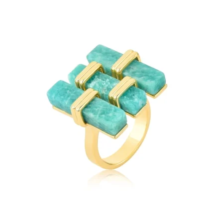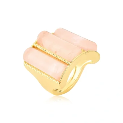 ANEL BANHO OURO 18K HASTE LISA AJUSTAVEL PEDRA TRIANGULAR DRUZA PLATINA TAM 17