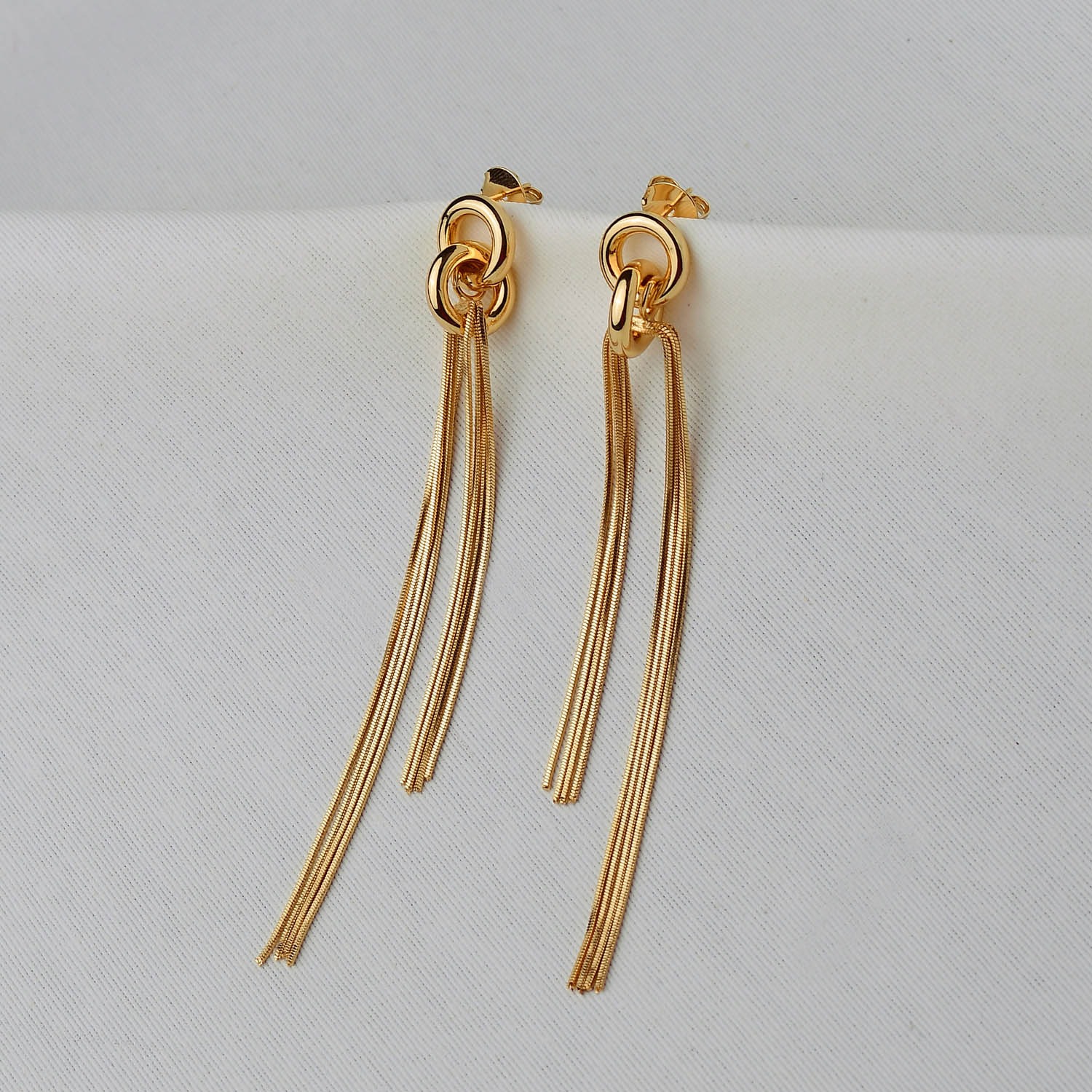 BRINCO BANHO OURO 18K 2 CIRCULOS LISO VASADOS ENTRELAÇADOS 4 HASTES FLEXIVEL TRACEJADA MINE